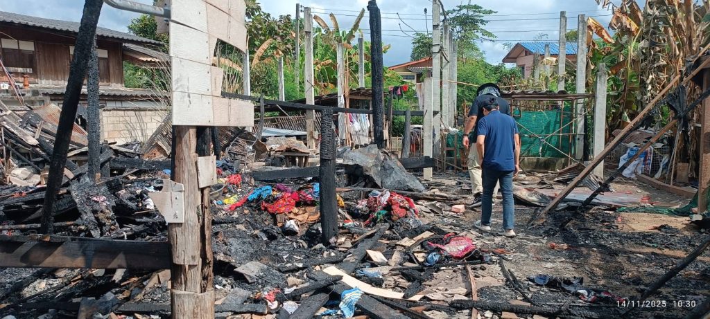 ทั้งนี้ เมื่อเวลา 10.50 น.วันที่ 13 พ.ย.2568 ร.ต.อ.ณัฐนันทน์ คำสาร รอง สว.(สอบสวน)สภ.เขลางค์นคร ได้รับแจ้งเหตุเพลิงไหม้บ้านในชุมชนบ้านกอกชุม ต.พระบาท อ.เมืองลำปาง จึงแจ้งประสาน เจ้าหน้าที่ดับเพลิง งานป้องกันและบรรเทาสาธารณภัย ทม.เขลางค์นคร พร้อมรถบรรทุกน้ำจำนวน 5 คัน และเจ้าหน้าที่สมาคมกู้ภัยลำปาง รุดไปตรวจสอบช่วยเหลือสามารถสกัดเพลิงไว้ได้ แต่บ้านไฟไหม้วอดทั้งหลัง