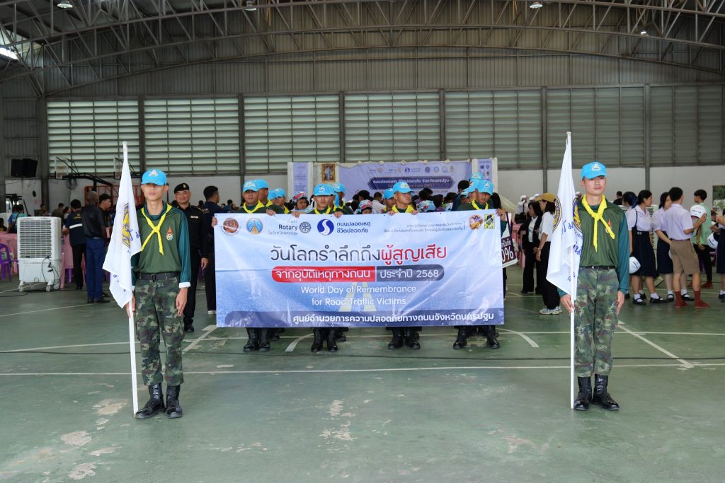 วันที่ 16 พฤศจิกายน 2568 ที่หอประชุมสมาคมผู้สูงอายุในเขตเทศบาลนครนครปฐม อ.เมือง จ.นครปฐม จังหวัดนครปฐม นางสาวอโรชา นันทมนตรี ผู้ว่าราชการจังหวัดนครปฐม เป็นประธานเปิดงาน วันโลกรำลึกถึงผู้สูญเสียจากอุบัติเหตุทางถนน ประจำปี 2568 โดยสโมสรโรตารีในพื้นที่จังหวัดนครปฐม ทั้ง 12 แห่ง ร่วมกับ หน่วยงานภาครัฐและภาคีเครือข่ายในจังหวัดนครปฐม เพื่อรณรงค์สร้างจิตสำนึกด้านความปลอดภัยและวินัยจราจรให้แก่ประชาชนทุกช่วงวัย ให้ถนนทุกสายในจังหวัดเป็น “ถนนปลอดเหตุ ชีวิตปลอดภัย” อีกทั้งสร้างความร่วมมือระหว่างภาครัฐ เอกชน และภาคประชาสังคม ตลอดจนร่วมกันขับเคลื่อนสังคมแห่งความปลอดภัยทางถนน นอกจากนี้เพื่อส่งเสริมให้เยาวชนเป็นแบบอย่างที่ดีในการ สวมหมวกนิรภัยและปฏิบัติตามกฎจราจรอย่างเคร่งครัด