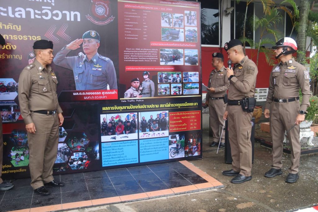 วันนี้(20พย.68) เวลา 10.00 น.ที่บริเวณหน้าสถานีตำรวจภูธรเมืองยะลา พล.ต.ต.กองอรรถ สุวรรณขำ ผู้บังคับการตำรวจภูธร จ.ยะลา พร้อมด้วย พ.ต.อ.ฉัตรชัย ศักดิ์ดี ผกก.สภ.เมืองยะลา ได้มีการแถลงข่าวผลการเปิดปฏิบัติการป้องกันเหตุทะเลาะวิวาทของกลุ่มวัยรุ่นในพื้นที่ สภ.เมืองยะลา โดยมีความคืบหน้า 2 คดี คือ เหตุกลุ่มวัยรุ่นใช้อาวุธปืนยิงคู่กรณีเสียชีวิต 1 ราย เมื่อวันที่ 21 ตุลาคม 2568 ตรงหัวสะพานข้างปั้มน้ำมัน ปตท.สาขาตือเบาะ อ.เมือง ล่าสุด ชุดสืบสวน สภ.เมืองยะลา ขอศาลออกหมายจับผู้ก่อเหตุแล้ว 5 หมาย และสามารถติดตามจับกุมตัวได้แล้ว 3 ราย พร้อมอาวุธปืน 1 กระบอก สามเหตุ เกิดจากการขัดแย้งและทะเลาะวิวาทมาก่อนระหว่างวัยนรุ่น 2 กลุ่ม และได้นัดมา เคลียร์ปัญหา แต่ตกลงกันไม่ได้ จึงตัดสินใจก่อเหตุยิง ส่วนความคืบหน้าคดีที่ 2.เมื่อวันที่ 14 พฤศจิกายน 2568 ได้มีกลุ่มวัยรุ่นใช้อาวุธปืนยิงใส่คู่กรณี มีผู้ได้รับบาดเจ็บ จำนวน 2 ราย เหตุเกิดบริเวณถนนเลียบคลองดามูซอ ต.สะเตง อ.เมือง ล่าสุดสามารถติดตามกผู้ก่อเหตุได้ 8 ราย สาเหตุมาจากปัญหาชู้สาว