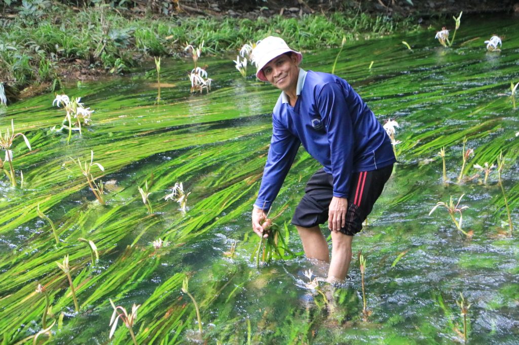 พังงา-หนึ่งเดียวในโลก พลับพลึงธาร ราชินีแห่งสายน้ำ ออกดอกบานสะพรั่งที่คลองตาเษม คุระบุรี