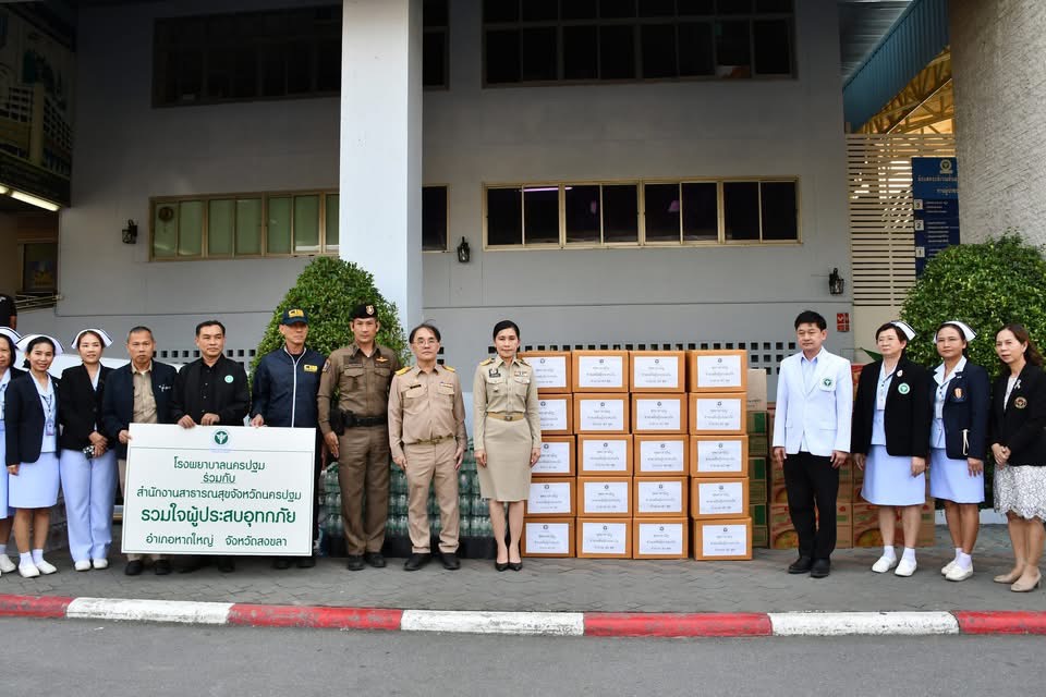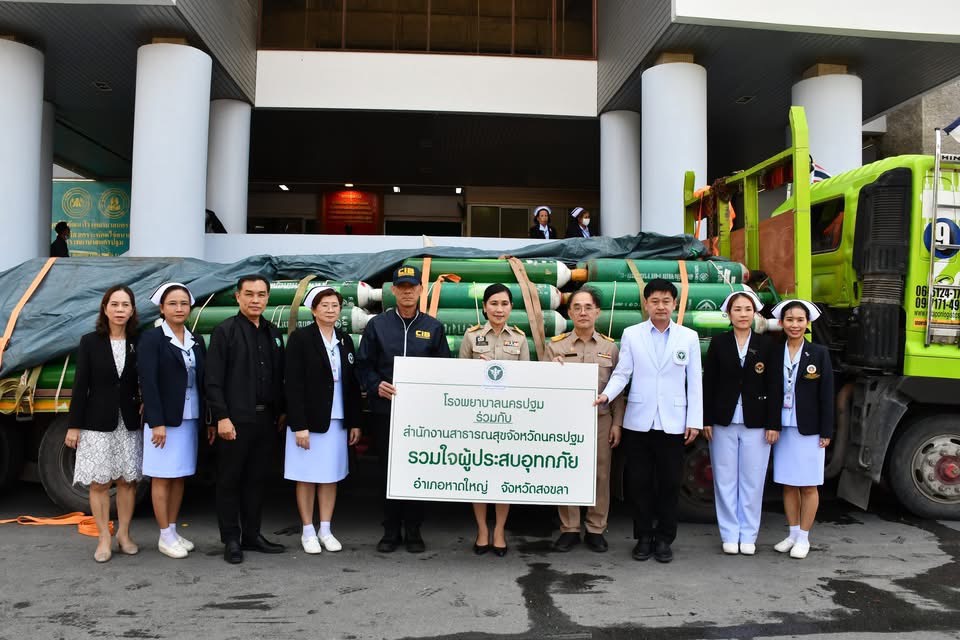โรงพยาบาลนครปฐม เเละ เครือข่ายสาธารณสุขจังหวัดนครปฐม เเละจังหวัดกาญจนบุรี รวมใจ จัดส่งถังออกซิเจน เวชภัณฑ์ยา อาหาร และน้ำดื่ม เพื่อช่วยเหลือผู้ประสบอุทกภัยรุนแรงในพื้นที่ภาคใต้