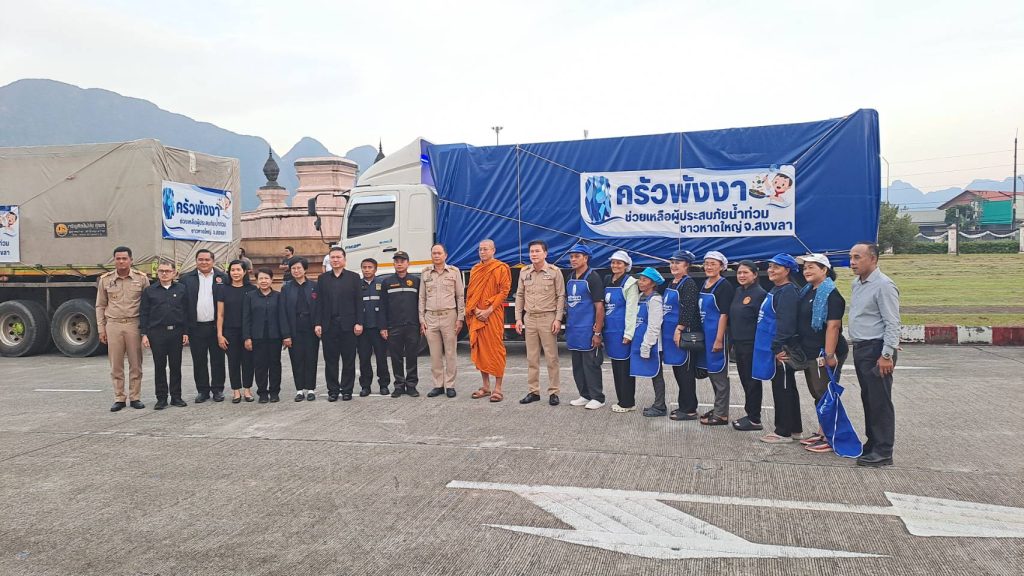 เมื่อวันที่ 27 พฤศจิกายน 2568 นายไพรัตน์ เพชรยวน ผู้ว่าราชการจังหวัดพังงา และหัวหน้าส่วนราชการ ร่วมปล่อยขบวนจิตอาสาโรงครัวพังงาคนไทยไม่ทิ้งกัน ออกเดินทางสู่อำเภอหาดใหญ่จังหวัดสงขลา เพื่อเปิดครัวพังงาช่วยผู้ประสบภัยน้ำท่วมในพื้นที่ อำเภอหาดใหญ่ จ.สงขลา ที่โรงเรียนหาดใหญ่รัฐประชาสรรค์ ซึ่งจะเริ่มประกอบอาหารสดใหม่สำหรับแจกจ่ายให้กับผู้ประสบอุทกภัยในพื้นที่อำเภอหาดใหญ่มื้อแรกในเย็นวันนี้ โดยมีแม่ครัวจิตอาสาจำนวนเกือบ 100 คน พร้อมวัตถุดิบและอุปกรณ์ทำครัวครบชุด เพื่อปรุงอาหารสดวันต่อวัน ช่วยบรรเทาความเดือดร้อนให้ผู้ที่ยังติดอยู่ในพื้นที่ถูกตัดขาดและศูนย์พักพิงต่าง ๆ