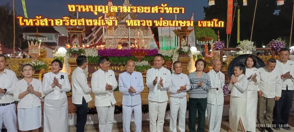 เมื่อเวลา 18.00 น.วันที่ 27 พ.ย.2568 ที่ จ.ลำปาง ผู้สื่อข่าวรายงานว่า ที่ สถานปฏิบัติธรรมหลวงพ่อเกษมเขมโก อ.เมืองลำปาง มีพิธีเปิดงานประเพณี “งานบุญตามรอยศรัทธา ไหว้สาอริยสงฆ์เจ้า หลวงพ่อเกษม เขมโก” ประจำปี 2568 ในระหว่างวันที่ 27- 29 พ.ย.นี้ โดยมี นายวิวัฒน์ อินไทยวงศ์ ผวจ.ลำปาง เป็นประธานพิธีเปิดและ นายธนารัฐ สายเทพ นอ.เมืองลำปาง กล่าวรายงาน