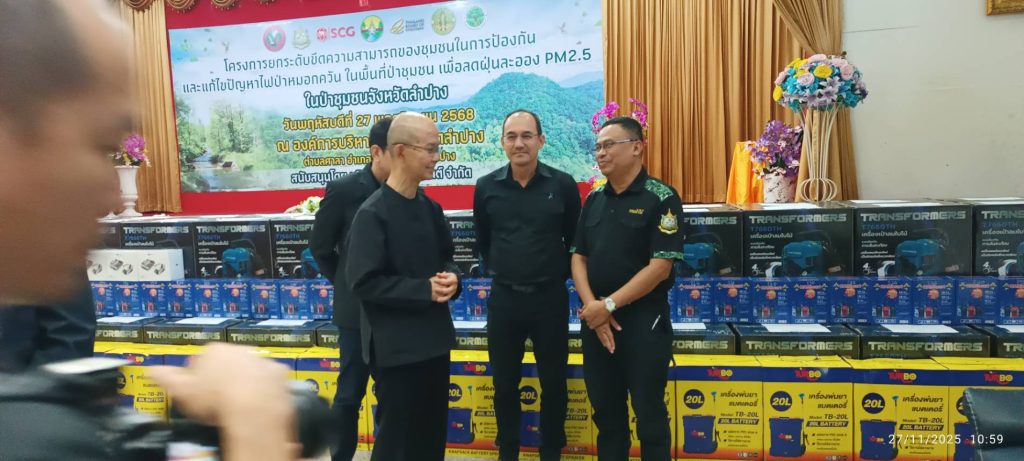 ลำปาง-SCG ส่งมอบอุปกรณ์ดับไฟป่าให้ อบจ.ลำปาง มอบให้เครือข่ายป่าชุมชน 13 อำเภอ แก้ไขปัญหา PM2.5