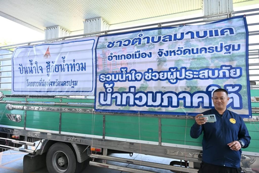 ทั้งนี้ จังหวัดนครปฐม ร่วมกับ คณะสงฆ์เปิดศูนย์รับบริจาคสิ่งของช่วยผู้ประสบภัยเขตภาคใต้ ณ ศาลากองอำนวยการ องค์พระปฐมเจดีย์ ระหว่างวันที่ 26-30 พฤศจิกายน 2568 ตั้งแต่เวลา 07.30-18.00 น. จึงขอเชิญพี่น้องชาวไทยรวมน้ำใจช่วยเหลือเพื่อนร่วมชาติผู้ประสบภัยน้ำท่วมในเขตภาคใต้ ด้วยการร่วมบริจาคข้าวสารอาหารแห้ง ของใช้ในชีวิตประจำวัน (ยกเว้นเสื้อผ้า) หรือบริจาคทรัพย์ตามกำลังศรัทธา