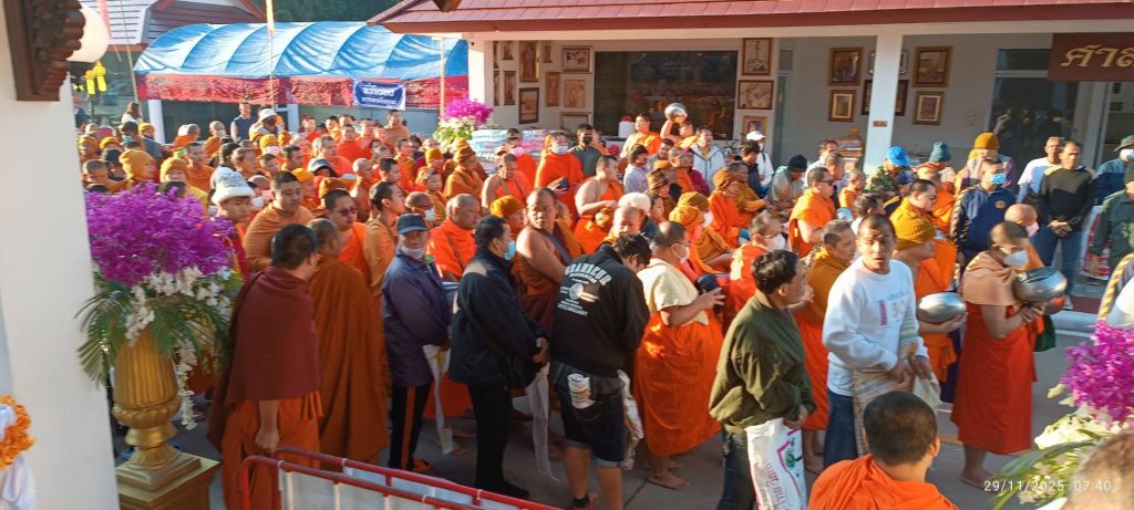 ลำปาง-พิธีทำบุญตักบาตรข้าวสารอาหารแห้ง แด่พระภิกษุสงฆ์ 114 รูป เนื่องในวันครบรอบชาตะกาล 113 ปีหลวงพ่อเกษม เขมโก