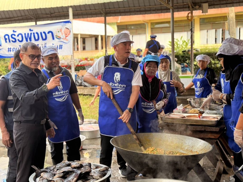 จังหวัดพังงา ได้ขนชุดอุปกรณ์เครื่องครัวและสิ่งของอุปโภคบริโภค รวมทั้งข้าวสาร ไข่ไก่ เนื้อสัตว์ พืชผัก และวัตถุดิบสำหรับการประกอบอาหารจากจังหวัดพังงา ใส่รถบรรทุกเดินทางไปจัดตั้งโรงครัว “ครัวพังงา คนไทยไม่ทิ้งกัน” ณ ศูนย์พักพิงแห่งนี้ เพื่อปรุงอาหารร้อน สด ใหม่ แจกจ่ายให้กับผู้อพยพ รวมทั้งผู้ที่ประสบภัยน้ำท่วมในพื้นที่ที่เข้าถึงลำบาก เพื่อบรรเทาความเดือนร้อนในยามวิกฤติ ซึ่งอาหารที่ทำในแต่ละวันจำนวนไม่น้อยกว่า 4,000 ชุด ได้ถูกแจกจ่ายไปยังพื้นที่โดยหน่วยงานรัฐ อาสาสมัครกู้ภัยจิตอาสา และเจ้าหน้าที่จิตอาสา