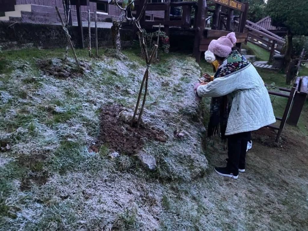 – พบเหมยขาบบริการหน้าหน่วยพิทักษ์ ยอดดอย แล้วลานจอด อุณหภูมิยอดหญ้า -0.5 องศา