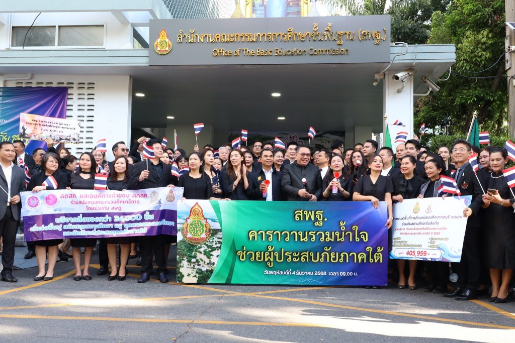 เมื่อวันที่ 4 ธันวาคม 2568 ศาสตราจารย์ ดร.นฤมล ภิญโญสินวัฒน์ รัฐมนตรีว่าการกระทรวงศึกษาธิการ (รมว.ศธ.) ได้รับมอบหมาย ให้นายพิเชฐ โพธิ์ภักดี เลขาธิการคณะกรรมการการศึกษาขั้นพื้นฐาน (เลขาธิการ กพฐ.) เป็นประธานในพิธีเปิดกิจกรรม “คาราวานช่วยเหลืออุทกภัยในพื้นที่ภาคใต้ ประจำปี พ.ศ. 2568” ในส่วนของสำนักงานคณะกรรมการ สกสค. ดร.พีระพันธ์ เหมะรัต เลขาธิการคณะกรรมการ สกสค. มอบ ดร.สุชาติ กลัดสุข นางสาวชนนิกานต์ สืบชนะ รองเลขาธิการคณะกรรมการ สกสค. นายภกร รงค์นพรัตน์ รองผู้อำนวยการองค์การค้าของ สกสค. พร้อมด้วยผู้บริหาร พนักงานเจ้าหน้าที่สำนักงานคณะกรรมการ สกสค. เข้าร่วม ณ สวนวันครู อาคาร สพฐ.1 กระทรวงศึกษาธิการ