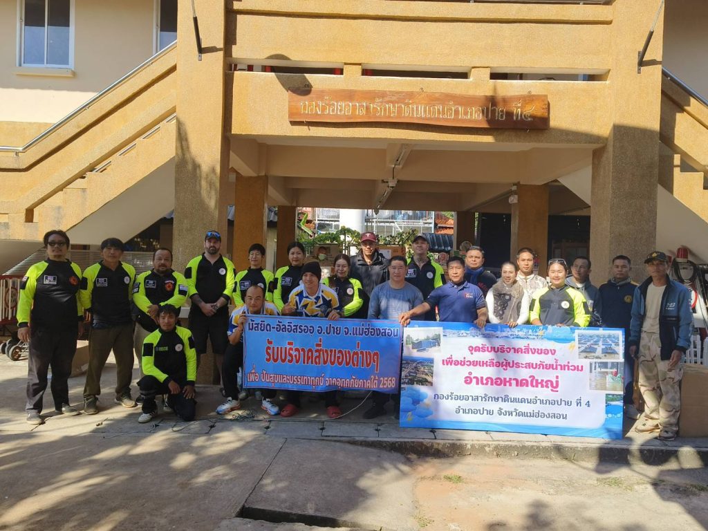- โดยการนำของ พระมหาสมศักดิ์ สุภเมธี (รองเจ้าคณะจังหวัดแม่ฮ่องสอน) นายณพล พาหุมันโต นายอำเภอปาย นางสาวพัชรี รักพวก นายแพทย์ ธนวัฒน์ คงธรรม (รองสาธารณะสุขจังหวัดแม่ฮ่องสอน,ผู้อำนวยการโรงพยาบาลปางมะผ้า มัสยิดอัล-อิสรออ ชุมชนอิสลาม อ.ปาย สมาคมกู้ภัยปายสามัคคีการกุศล ร้อย อส.อำเภอปาย ที่ 4 ประชาชนทั้งในเขตอำเภอปายและปางมะผ้า ร่วมกันรวบรวมบริจาคสิ่งของเครื่องใช้อุปโภคบริโภค เพื่อช่วยเหลือและส่งมอบให้กับผู้ประสบอุทกภัยในพื้นที่ อ.หาดใหญ่และพื้นที่ใกล้เคียงที่ได้รับผลกระทบในครั้งนี้