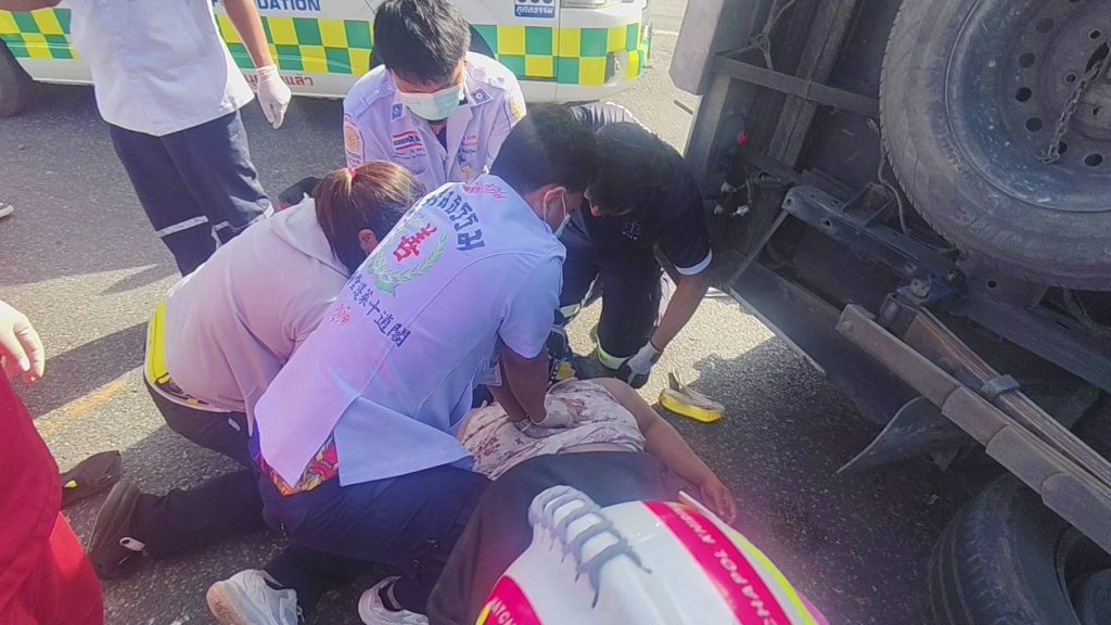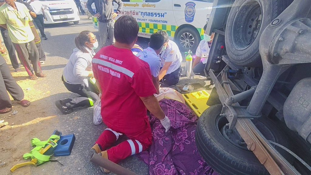พังงา ภาพเหตุการณ์นาทีชีวิตเจ้าหน้าที่กู้ภัยปั๊มหัวใจหญิง 38 ปีขับรถมอเตอร์ไซค์ถูกกระบะชนทับร่างเสียชีวิต