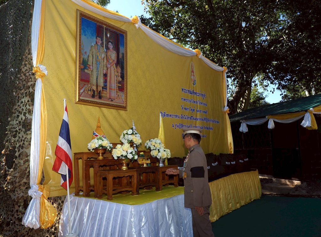 พระบาทสมเด็จพระเจ้าอยู่หัว โปรดเกล้าฯ ให้องคมนตรี เชิญสิ่งของพระราชทานมอบแก่เจ้าหน้าที่กองกำลังชายแดน ณ ฐานปฏิบัติการบ้านจ่าโบ่ จังหวัดแม่ฮ่องสอน