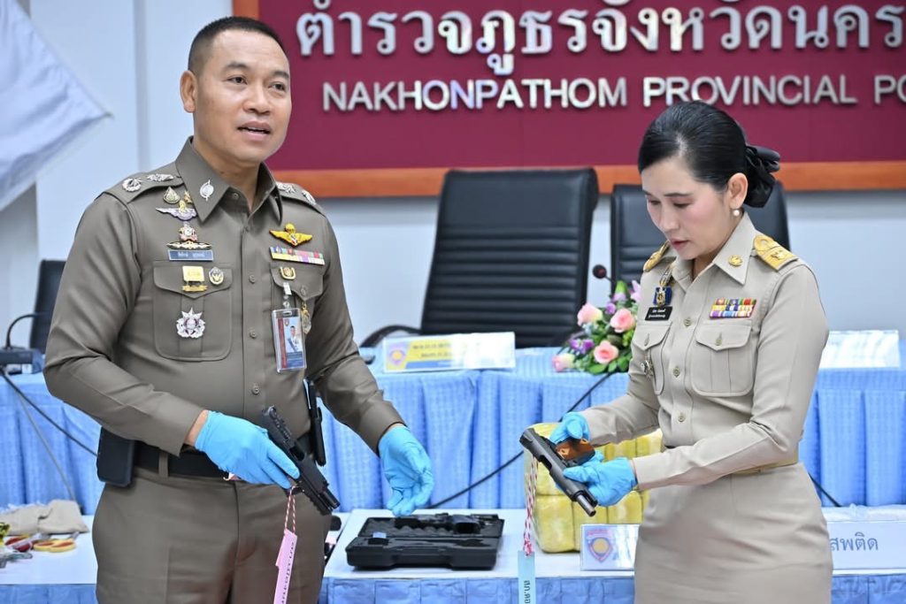 จังหวัดนครปฐม ร่วมกับตำรวจภูธรจังหวัดนครปฐม แถลงผลการจับกุมผู้ต้องหาในคดียาเสพติด อาวุธปืน บุคคลตามหมายจับ และการป้องกันปราบปรามการแข่งรถในทาง ภายใต้ปฏิบัติการ “อรุณ พิทักษ์นครปฐม”