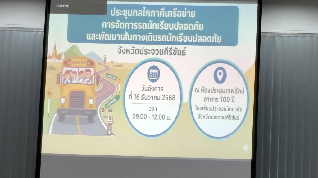 ประจวบคีรีขันธ์ – วันที่ 17 ธันวาคม 2568 ณ ห้องประชุมอนุสรณ์ 100 ปี โรงเรียนประจวบวิทยาลัย หน่วยงานประจำจังหวัดประจวบคีรีขันธ์ สภาองค์กรของผู้บริโภค จัดประชุม กลไกภาคีเครือข่ายการจัดการรถนักเรียนปลอดภัย และพัฒนาเส้นทางเดินทางรถนักเรียนปลอดภัย จังหวัดประจวบคีรีขันธ์ โดยเชิญหน่วยงานที่เกี่ยวข้องจากทุกภาคส่วนเข้าร่วม เพื่อร่วมกันยกระดับมาตรการความปลอดภัยในการเดินทางของนักเรียนอย่างเป็นระบบและเป็นรูปธรรม