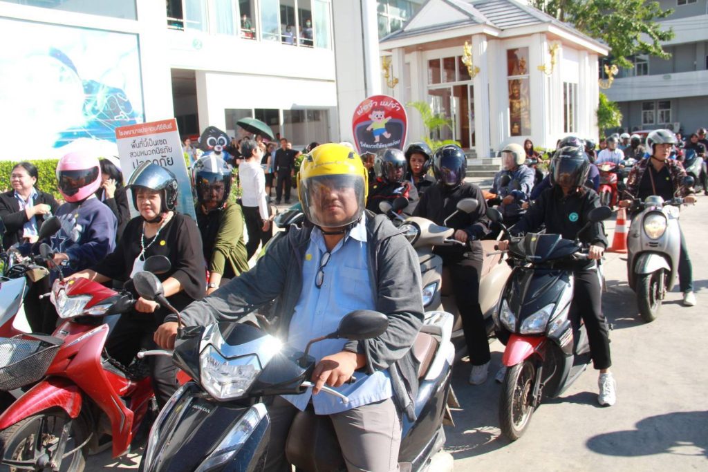 ผู้ว่าประจวบฯ – ผู้ตรวจฯ สธ.เขตสุขภาพที่ 5 ร่วมเปิดโครงการป้องกันการบาดเจ็บจากการจราจรทางถนน และปล่อยขบวนรถจักรยานยนต์รณรงค์ขับขี่สวมหมวกนิรภัย 100%