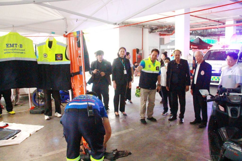 รองนายแพทย์สาธารณสุขจังหวัดฯ คณะผู้บริหาร รพ.ประจวบฯ หัวหน้าส่วนราชการจังหวัด ผู้แทนหน่วยงานทั้งภาครัฐและเอกชน เครือข่ายด้านความปลอดภัยทางถนนในพื้นที่ เจ้าหน้าที่มูลนิธิสว่างประจวบฯ เจ้าหน้าที่ศูนย์สั่งการฯ เจ้าหน้าที่หน่วยกู้ชีพ 1669 เจ้าหน้าที่และบุคลากร รพ.ประจวบฯ เจ้าหน้าที่สำนักงานสาธารณสุขจังหวัด ตำรวจภูธรจังหวัด อาสาสมัครสาธารณสุขประจำหมู่บ้าน(อสม.) นักเรียน รร.ประจวบวิทยาลัย นักศึกษาวิทยาลัยเทคนิคประจวบฯ ตลอดจน ผู้มาใช้บริการภายในโรงพยาบาล เข้าร่วม