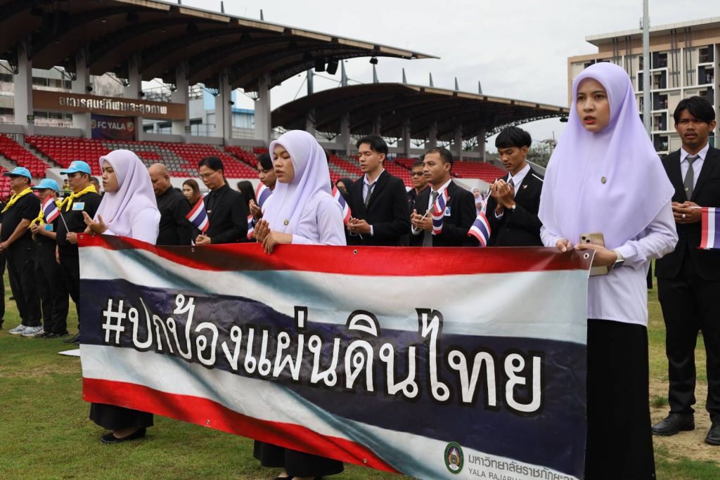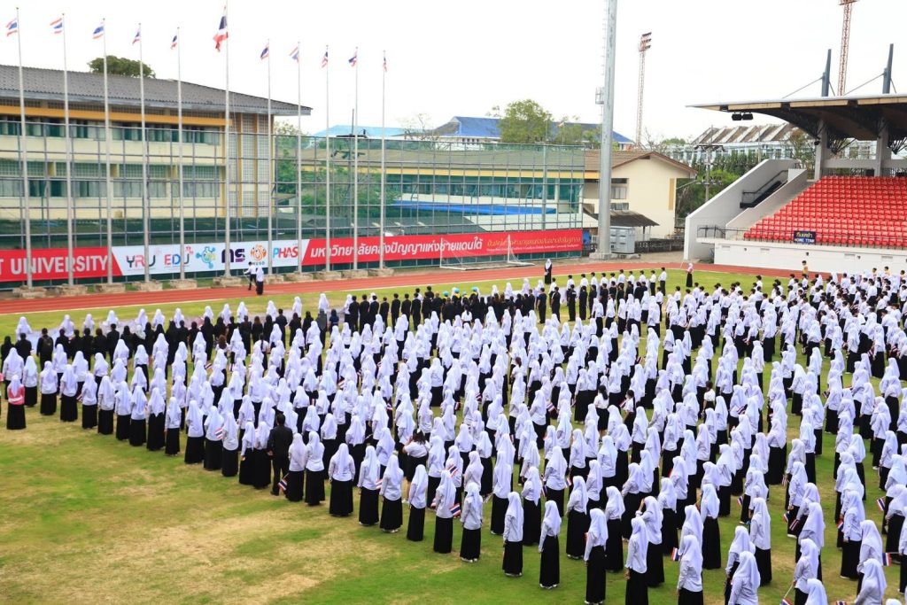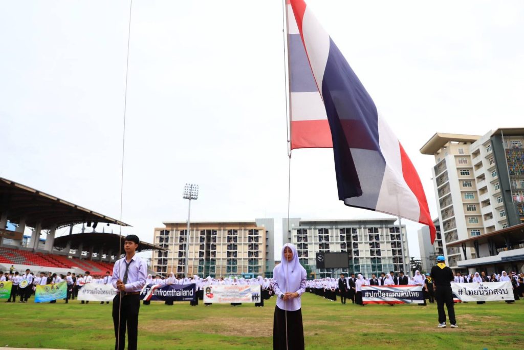 มรภ.ยะลา รวมพลัง 3,800 คน เคารพธงชาติ–ร้องเพลงชาติ ปลูกจิตสำนึกรักชาติ หนุนกำลังใจผู้พิทักษ์อธิปไตยไทย