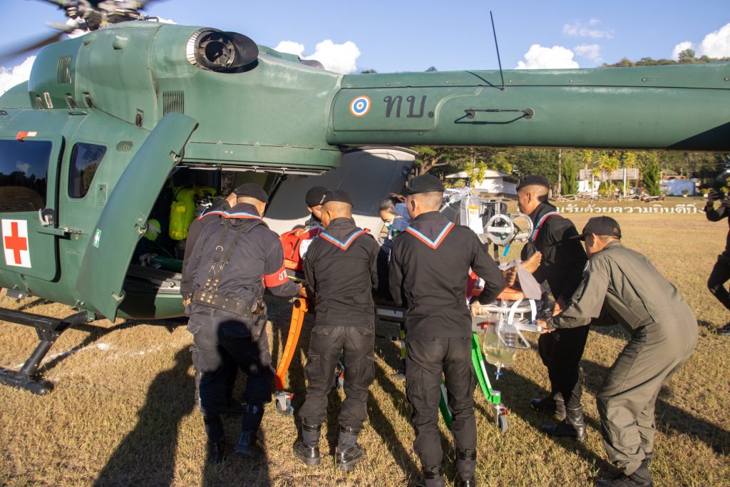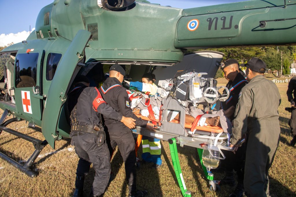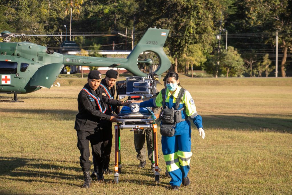 ทีมแพทย์ Sky Doctor จากกองกำลังผาเมือง นำ ฮ. บินมาช่วยเหลือผู้ป่วยไม้ล้มทับศีรษะอาการสาหัส ที่โรงพยาบาลแม่สะเรียง จ.แม่ฮ่องสอน ส่งไปรักษาตัวที่ โรงพยาบาลนครพิงค์ จ.เชียงใหม่