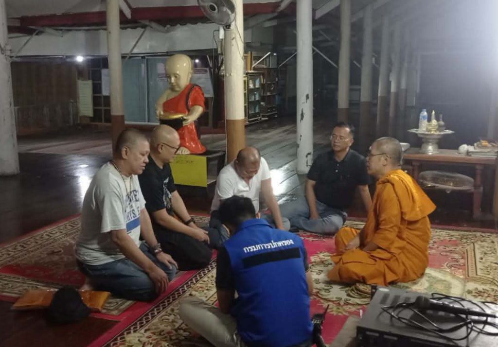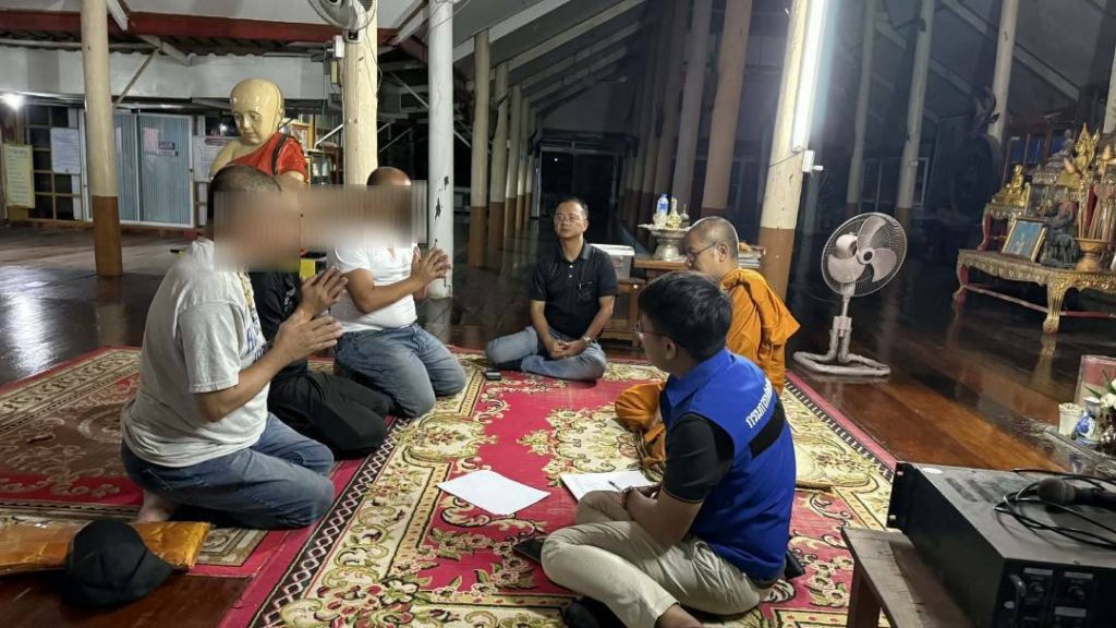 จึงเดินทางไปตรวจสอบตามที่ได้รับการร้องเรียน แต่เมื่อไปถึงพบชายหัวเกียน ใส่เสื้อปักชื่อร้าน เหมือนพนักงานบริการในร้าน เมื่อเจ้าหน้าที่ขอตรวจสอบทางร้าน ชาย 3 คน กลับเดินตัวสั่นหลบหนีเจ้าหน้าที่อย่างมีพิรุธ จึงเชิญตัวมาสอบถาม ตอนแรกอ้างเป็นหุ้นส่วนร้าน แต่เมื่อไปตรวจสอบในห้องน้ำ ในครัว พบเสื้อยืดสีขาวถูกถอดเปลี่ยนเป็นเสื้อของทางร้าน โดยพบบัตรห้อยคอ เป็นพระสอน ปฏิบัติวิปัสนากรรมฏฐาน สำหรับพระนวกะประจำปี พุทธศักราช 2568 คณะสงฆ์อำเภอสามชุก ระบุชื่อพระครูดิลกปัญญาภรณ์ จึงจำนนยอมรับว่าตนคือ พระครูดิลกปัญญาภรณ์ หรือ นายวัลลภ อายุ 53 ปี เป็นเจ้าอาวาสวัดดังแห่งนึ่ง ใน อ.สามชุก