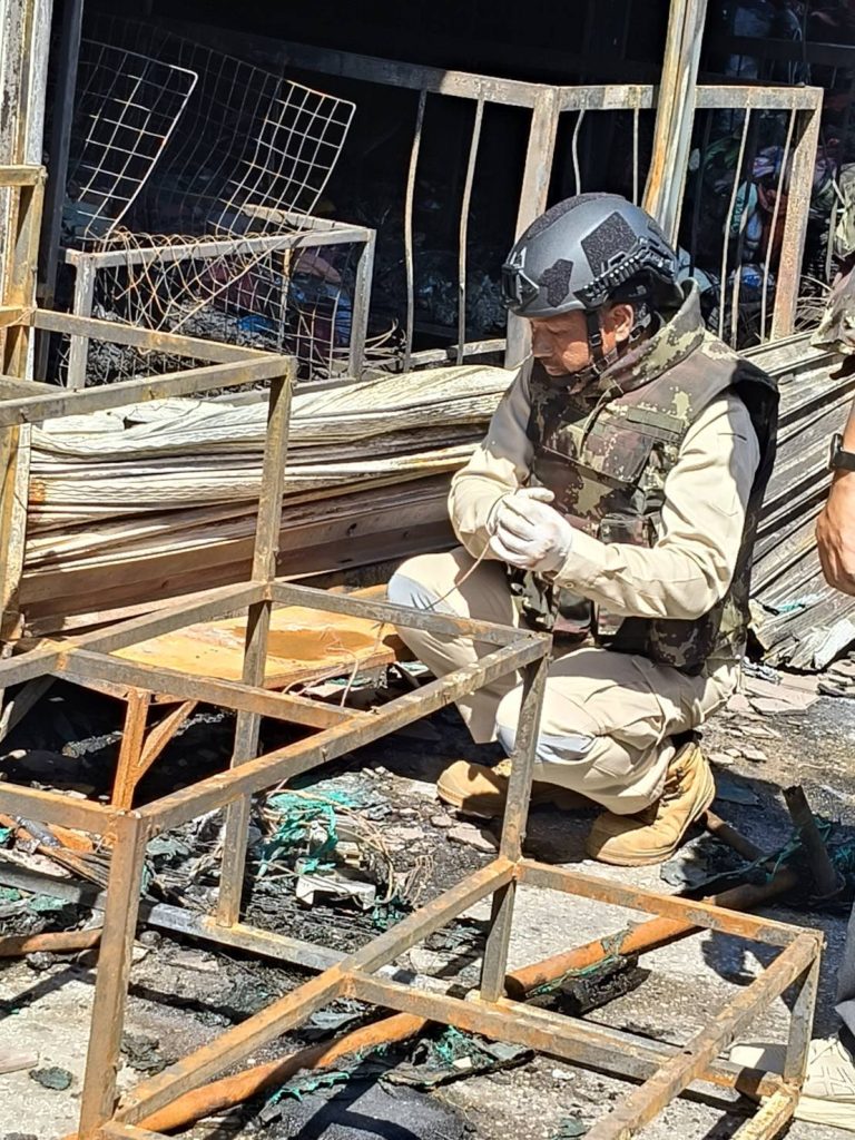 พันเอกจตุรภัทร เปิดเผยว่า เหตุเพลิงไหม้เกิดขึ้นเมื่อเวลาประมาณ 01.20 น. ต้นเพลิงอยู่บริเวณอาคาร ภ.1 ซึ่งเป็นร้านจำหน่ายอุปกรณ์ไฟฟ้า ก่อนจะลุกลามไปยังอาคารข้างเคียงอีกหลายห้อง เจ้าหน้าที่ได้ระดมกำลังประสานรถดับเพลิงจากหลายหน่วยงาน จนสามารถควบคุมเพลิงไว้ได้ในเวลาประมาณ 03.00 น.