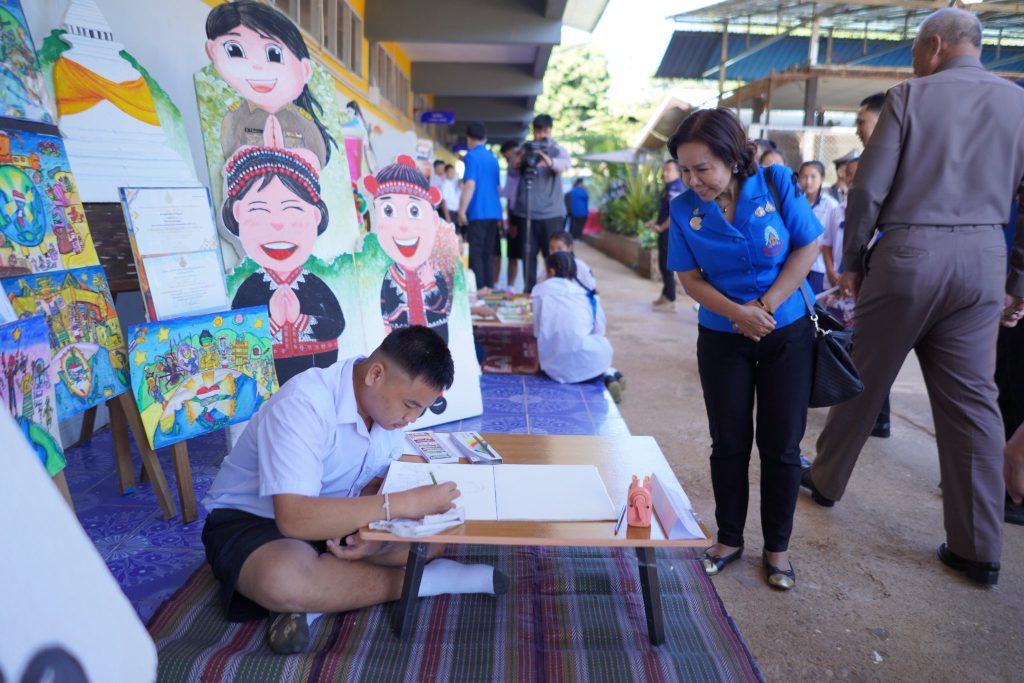 จากนั้น องคมนตรีและคณะได้เยี่ยมชมนิทรรศการและกิจกรรมฝึกอาชีพของโรงเรียน ซึ่งเป็นการเสริมสร้างทักษะอาชีพ สร้างรายได้ระหว่างเรียน และสามารถนำไปต่อยอดประกอบอาชีพในอนาคต และยังสะท้อนถึงพระมหากรุณาธิคุณและความห่วงใยด้านการศึกษาของเยาวชนในพื้นที่ห่างไกล อันจะนำไปสู่การยกระดับคุณภาพชีวิต และโอกาสทางการศึกษาอย่างยั่งยืนต่อไป