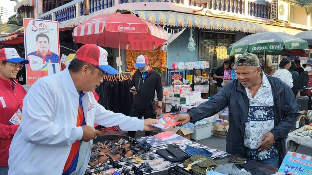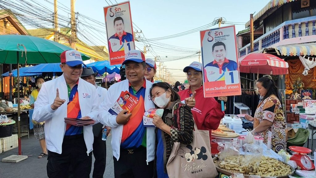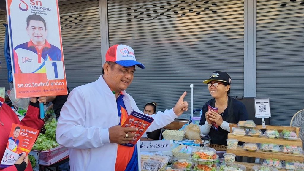 รศ.ดร.วิระศักดิ์ ฮาดดา ผู้สมัคร ชิงตำแหน่ง นายก อบต.คลองสาม หมายเลข 1 ทีมรักคลองสาม พร้อมทีมงานผู้ช่วยหาเสียงออกเดินเท้าพบปะประชาชนภายในหมู่บ้านพฤกษา12 ม.2 ต.คลองสาม อ.คลองหลวง จ.ปทุมธานี โดยแจกใบแนะนำตัวและใบนโยบายในการหาเสียงแจกให้กับประชาชนที่มาเดินจับจ่ายซื้อของในตลาดสดในช่วงเช้า