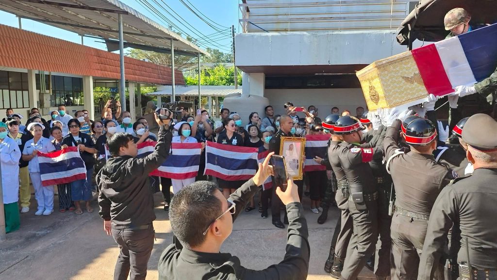 ปราจีนบุรี-ร่วมส่งร่างทหารกล้าที่เสียสละเลือดเนื้อเพื่อปกป้องอธิปไตยของชาติไทยในสมรภูมิ