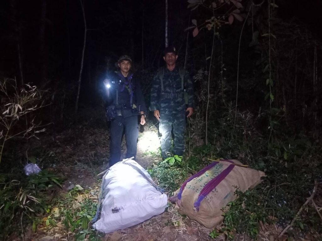 เมื่อเจ้าหน้าที่แสดงตัวขอเข้าตรวจสอบ กลุ่มบุคคลดังกล่าวได้อาศัยความชำนาญในพื้นที่และความมืด ทิ้งกระสอบสัมภาระก่อนจะวิ่งหลบหนีกลับข้ามแดนไปอย่างรวดเร็ว