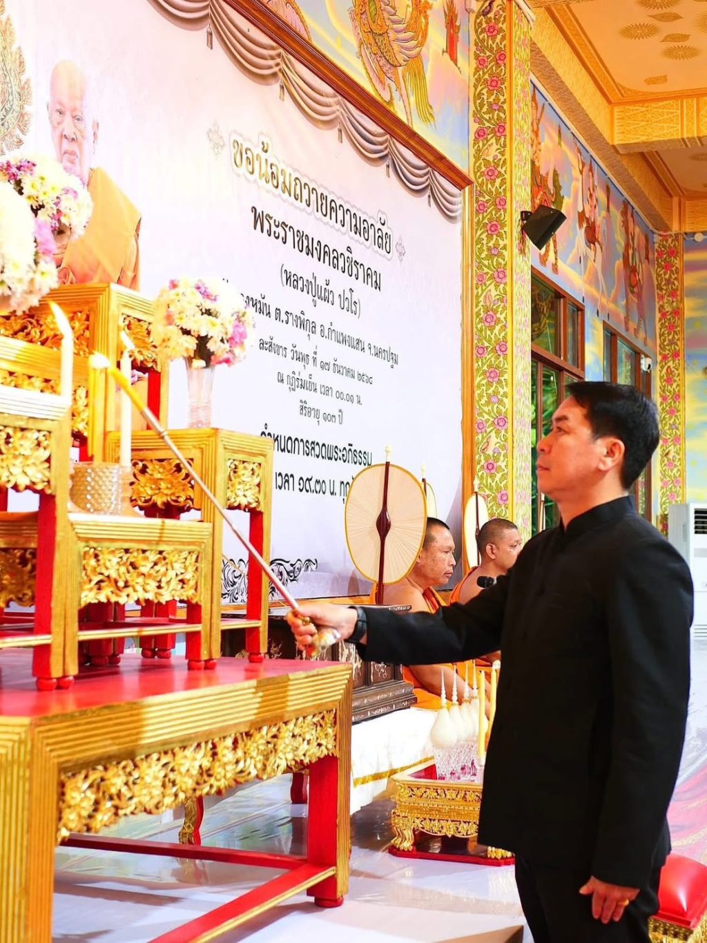 วันจันทร์ที่ 22 ธันวาคม 2568 เวลา 19.30 น. นายเกียรติศักดิ์ ธนาวรรณโอภาส นายอำเภอกำแพงแสน เป็นประธานพิธีสวดพระอภิธรรมถวาย แด่พระราชมงคลวชิราคม อุดมธรรมสุนทร (หลวงปู่แผ้ว ปฺวโร) ณ กุฎิร่มเย็น วัดประชาราษฎร์บำรุง (รางหมัน) ตำบลรางพิกุล อำเภอกำแพงแสน จังหวัดนครปฐม ในการนี้ รองศาสตราจารย์ นายสัตวแพทย์ ดร. อนุชัย ภิญโญภูมิมินทร์ รองอธิการบดี มหาวิทยาลัยเกษตรศาสตร์ วิทยาเขตกำแพงแสน พ.ต.อ.ปราโมทย์ โพธิ์พันธุ์ ผกก.สภ.กำแพงแสน นายจิรายุทธ จำเล ประธานชมรมกำนัน ผู้ใหญ่บ้านอำเภอกำแพงแสน ร่วมพิธีดังกล่าวพร้อมด้วย กำนัน ผู้ใหญ่บ้านฯอำเภอกำแพงแสน หัวหน้าส่วนราชการ ผู้บริหารองค์กรปกครองส่วนท้องถิ่น และข้าราชการ พนักงาน ลูกจ้าง สังกัดที่ทำการปกครองอำเภอกำแพงแสน และประชาชนทั่วไปร่วมพิธีโดยพร้อมเพรียงกัน
