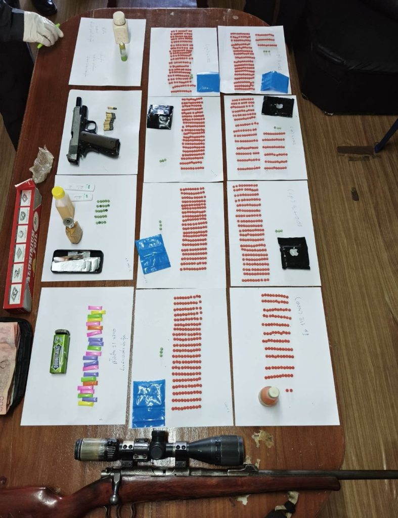 เจ้าหน้าที่ฝ่ายป้องกันอำเภอขุนยวม จ.แม่ฮ่องสอน ได้กลิ่นมีการจำหน่ายยาบ้าในพื้นที่ จึงสนธิกำลังหลายฝ่ายเข้าปิดล้อมจับกุมผลยึดยาบ้าได้ 1,560 เม็ด เฮโรอีน 44.63 กรัม พร้อมอาวุธปืน นำส่งพงส.ดำเนินคดีตามกฎหมาย