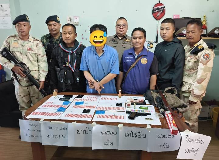 เมื่อวันที่ 25 ธ.ค. 2568 เวลาประมาณ 10.00 น. โดยการอำนวยการของนายอภิชา หมู่โสภิญ ปลัดอำเภอ หน.กง.บป./รักษาราชการแทน นอภ.ขุนยวม มอบหมายให้ชุดปฏิบัติการพิเศษฝ่ายปกครองอำเภอขุนยวม นำโดย นายภาคภูมิ วารปรีดี ปลัดอำเภอ หน.กง.คม., นายสกล ศรีมณีทองกุล ปลัดอำเภอ กง.คม., และสมาชิก อส.ร้อย.อส.อ.ขุนยวม 6 สนธิกำลังร่วมกับ ชุดปฏิบัติการพิเศษ กรม ทพ.36, กก.สส.ภ.จว.แม่ฮ่องสอน, สภ.ขุนยวม, ร้อย.ทพ.3604, ปิดล้อมตรวจค้นเป้าหมาย บ้านเลขที่ 42 หมู่ที่ 3 ต.แม่อูคอ อ.ขุนยวม จ.แม่ฮ่องสอน พบนายสุรพล (ขอสงวนนามสกุล) อายุ 39 ปี พร้อมกับของกลาง 1. ยาเสพติด (ยาบ้า) จำนวน 1,560 เม็ด , 2. เฮโรอีน จำนวน 44.63 กรัม , 3. อาวุธปืนยาวไทยประดิษฐ์ จำนวน 1 กระบอก , 4. อาวุธปืนพกสั้นขนาด .22 จำนวน 1 กระบอก และ 5. กระสุนปืนขนาด .22 จำนวน 11 นัด จึงได้ควบคุมตัวนายสุรพลฯ พร้อมกับของกลางทั้งหมด ส่งให้ สภ.ขุนยวม เพื่อดำเนินการตามกฎหมายต่อไป