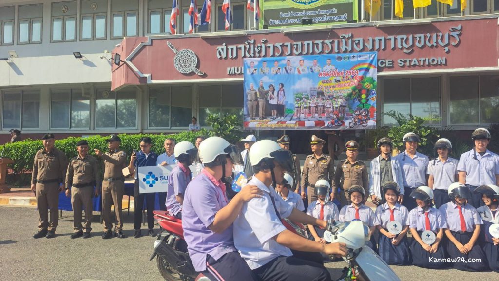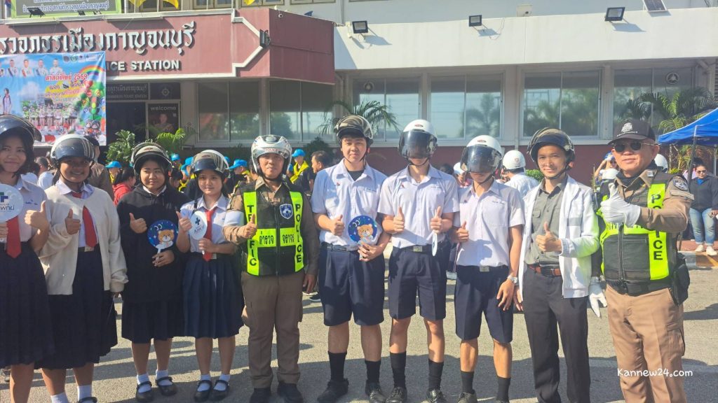 เมื่อวันที่ 25 ธันวาคม 2568. ณ.สถานีตำรวจภูธรเมืองกาญจนบุรี ได้จัดโครงการ “แจกหมวกนิรภัยด้วยใจ สร้างความปลอดภัยประชาชน” เพื่อส่งเสริมวินัยจราจรและสร้างความปลอดภัยให้กับเด็กนักเรียนและประชาชนผู้ใช้รถใช้ถนนในพื้นที่