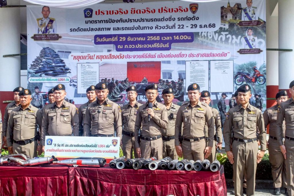 เมื่อวันที่ 29 ธันวาคม 2568 กองบังคับการตำรวจภูธรจังหวัดประจวบคีรีขันธ์ แถลงผลปฏิบัติการ “หยุดแว๊น! หยุดเสียงดัง ประจวบคีรีขันธ์ เมืองท่องเที่ยว ประชาชนปลอดภัย” ระหว่างวันที่ 22–29 ธันวาคม 2568 โดยมี พล.ต.ต.อาทร ชิ้นทอง ผู้บังคับการตำรวจภูธรจังหวัดประจวบคีรีขันธ์ เป็นประธาน พร้อมรองผู้บังคับการและผู้กำกับการทุกพื้นที่เข้าร่วม