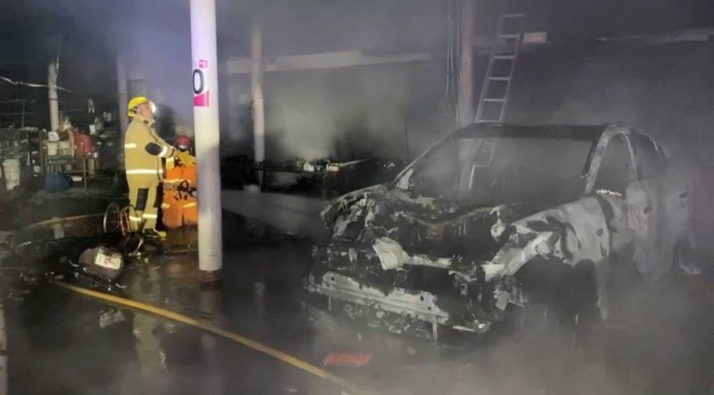 ที่เกิดเหตุ พบแสงเพลิงลุกไหม้รถยนต์ และลุกลามตัวโรงจอดรถ และห้องเก็บวัสดุอุปกรณ์การเกษตร ทำสวนกล้วยไม้ อย่างรุนแรง เจ้าหน้าที่ดับเพลิงช่วยกันระดมฉีดน้ำควบคุมเพลิงและ ป้องกันไม่ให้ลุกลาม เข้าไปติดบ้านหลังใหญ่ ที่อยู่ใกล้กัน โดยใช้เวลาในการควบคุมเพลิงประมาณ 45 นาที สามารถควบคุมเพลิงได้ เบื้องต้นพบว่ารถยนต์ไฟฟ้ายี่ห้อดัง ถูกฟไหม้วอด โรงจอดรถ วัสดุอุปกรณ์การเกษตร ทำสวนกล้วยไม้ ถูกไฟไหม้เสียหายทั้งหมด