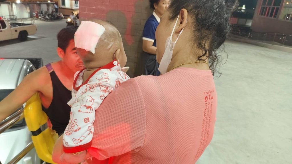 เด็กทารกวัย 3 เดือน ที่อยู่ในรถที่เกิดเหตุด้วย เกือบโดนกระสุน แต่ได้รับบาดจากรถพลิกคว่ำบริเวณศีรษะ ขณะนี้อาการปลอดภัยแล้ว