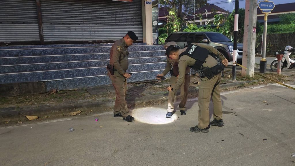 ที่เกิดเหตุพบรถจักรยานยนต์พ่วงข้างไม่ติดแผ่นป้ายทะเบียนของผู้บาดเจ็บ พลิกคว่ำอยู่ริมถนน ใกล้กันพบปลอกกระสุนปืนไม่ทราบขนาดจำนวน 3 ปลอก และรอยเลือดหยดเป็นทาง คาดเป็นจุดเกิดเหตุยิง
