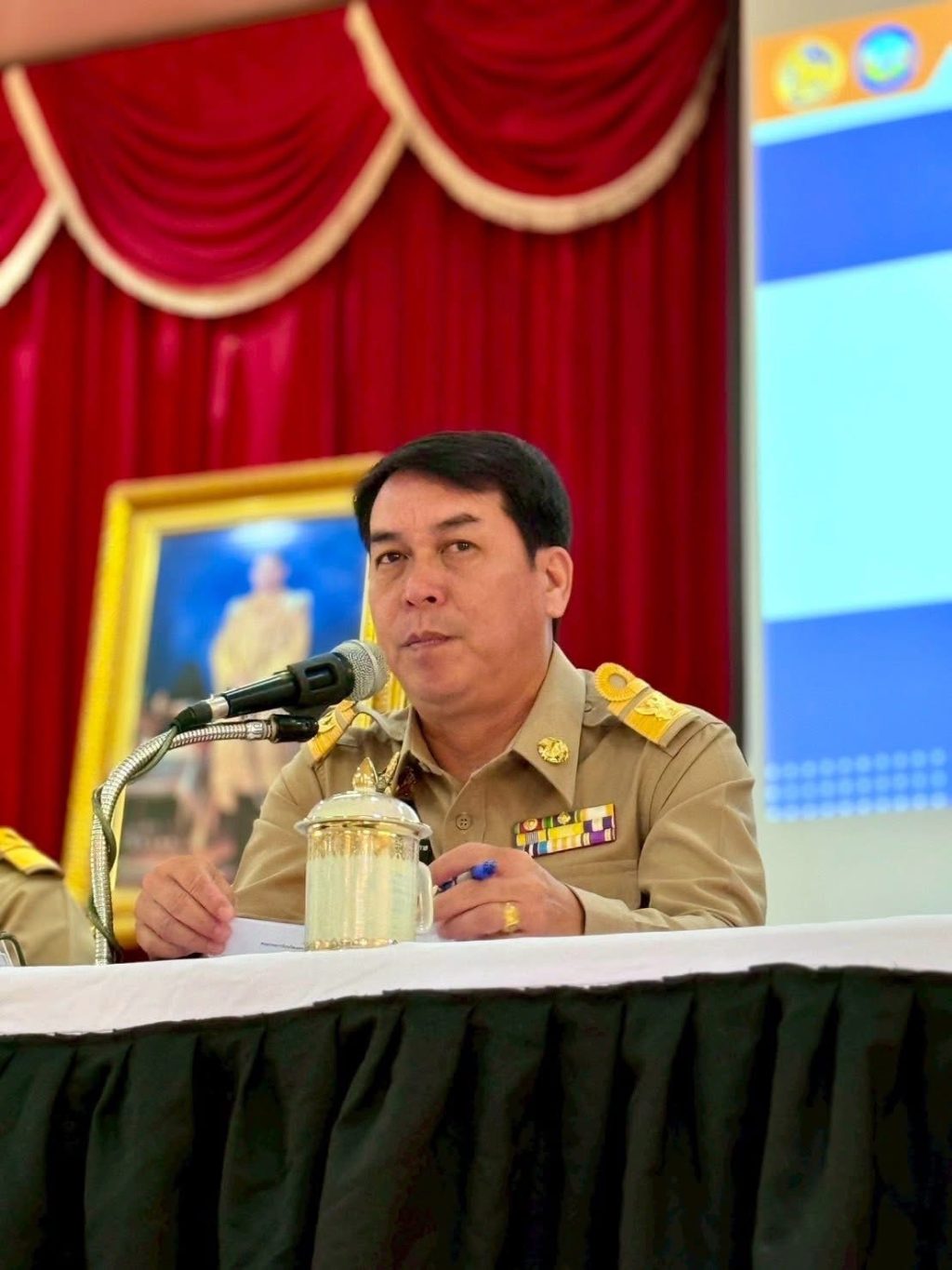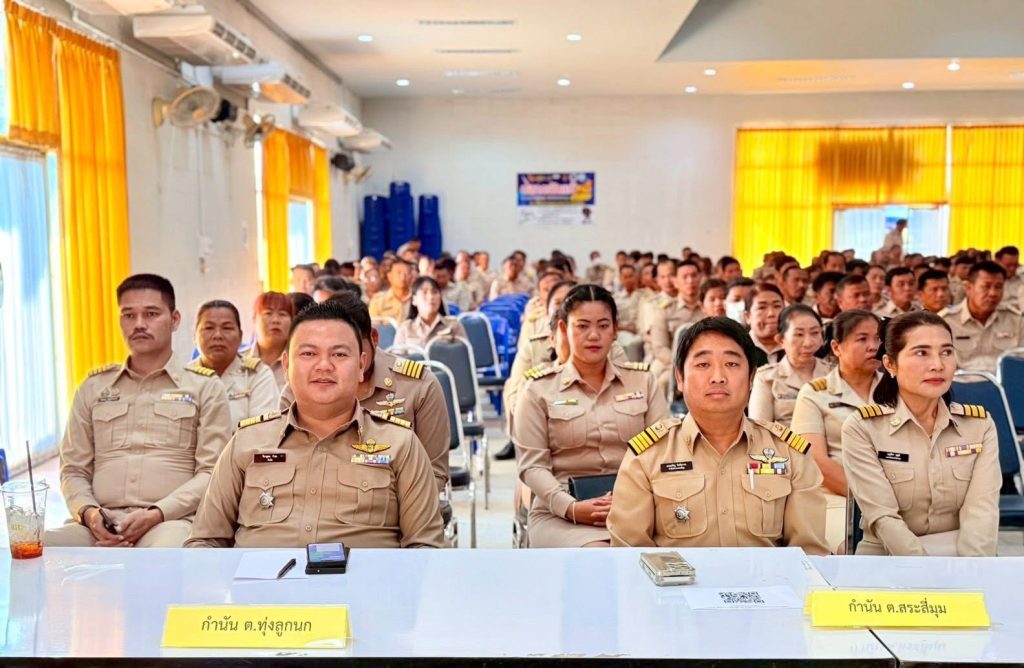 นายอำเภอกำแพงแสนเป็นประธานประชุมประจำเดือนชี้แจงและมอบนโยบายสำคัญให้กับกำนันผู้ใหญ่บ้านที่เข้าประชุม