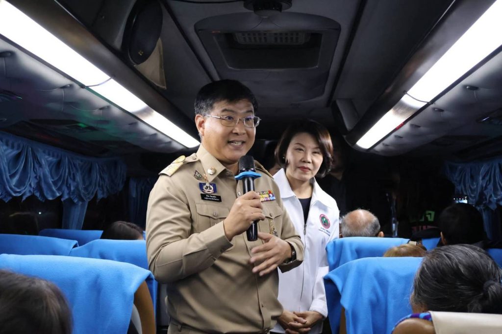 โดยมีนายพัชระ สิมะเสถียร รอง ผวจ.ลำปาง พร้อมด้วย น.ส.ตวงรัตน์ โล่ห์สุนทร นายก อบจ.ลำปาง นอ.แม่เมาะ แม่ทะ และ นอ.ห้างฉัตร นายแพทย์ สสจ.ลำปาง ขนส่งจังหวัดลำปาง น.ส.ธนวรรณ์ ชุมแสง ประชาสัมพันธ์จังหวัดลำปาง หน.ส่วนราชการ ตำรวจ สภ.เกาะคา ร่วมส่งกำลังใจ โดยมีขบวนรถบัสโดยสารจำนวน 18 คัน จำนวน 750 คน รถตู้เจ้าหน้าที่อำนวยความสะดวก แพทย์ พยาบาล ตำรวจ ทหาร จำนวน 10 คัน โดยมีรถยนต์ตำรวจทางหลวงลำปางนำขบวน