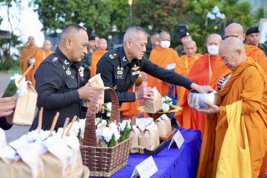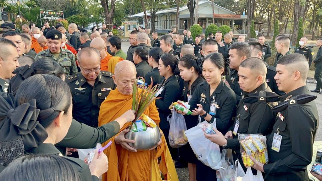 ลำปาง-ผบ.มทบ.32 นำคณะนายทหาร ข้าราชการ ทำบุญตักบาตรเนื่องในเทศกาลปีใหม่ 2569