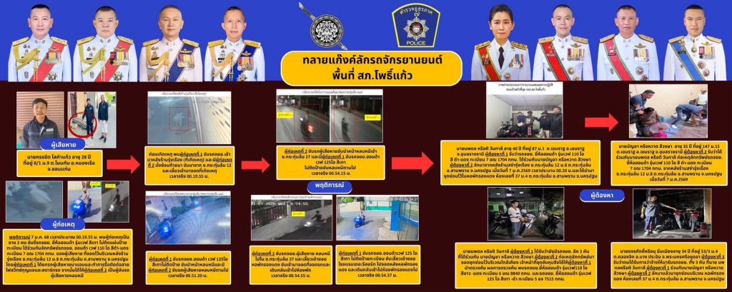 ซึ่งทางเจ้าหน้าที่ตำรวจได้สืบสวน และขยายผลไปถึงผู้ที่ทำหน้าที่รับซื้อรถจักรยานยนต์เหล่านี้ที่ถูกลักไปด้วย เพื่อดำเนินการจับกุมให้เสร็จสิ้นทั้งกระบวนการต่อไป