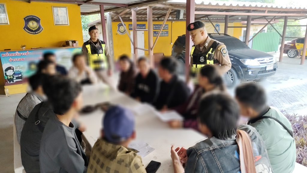 เจ้าหน้าที่จึงส่งสัญญาณให้หยุดเพื่อขอตรวจค้น พบภายในรถมีแรงงานต่างด้าว 13 คนรวมคนขับ เป็นชาย 9 คนและหญิง 4 คน ตรวจสอบเบื้องต้นมีหนังสือรับรองรายการทะเบียนประวัติของต่างด้าว ที่ได้รับอนุญาตให้อยู่ในราชอาณาจักรเป็นกรณีพิเศษ 3 คน เป็นหญิง 2 คน ชาย 1 คน นอกนั้นมีเอกสารที่ยังอยู่ระหว่างตรวจสอบไม่มีเอกสารใดๆเป็นหญิง 1 คน