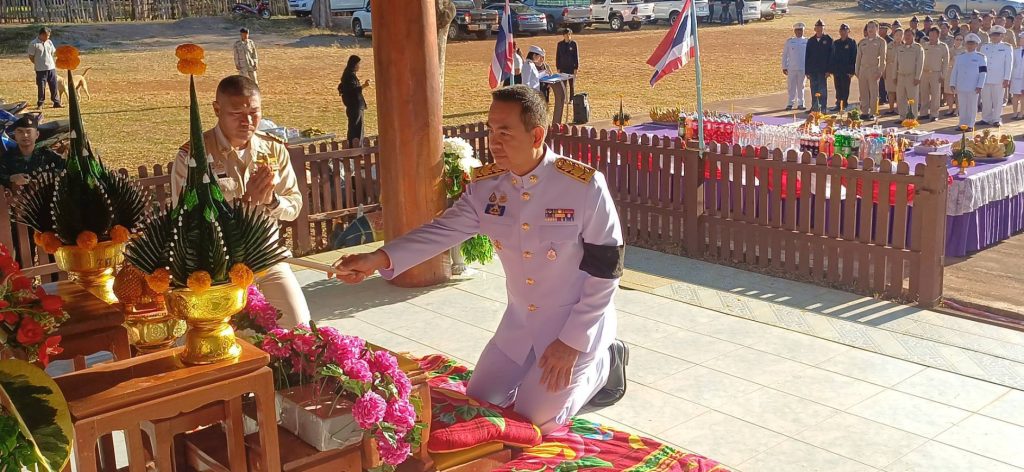 อำเภอพบพระ จังหวัดตาก – เมื่อวันที่ 18 มกราคม 2569 เวลา 08.00 น. ที่ ศาลสมเด็จพระนเรศวรมหาราช บ้านทหารผ่านศึก หมู่ที่ 4 ตำบลรวมไทยพัฒนา อำเภอพบพระ จังหวัดตาก นาย ธันย์ปวัฒน์ ภูริวัฒนเมธา นายอำเภอพบพระ เป็นประธานในพิธีวางพานพุ่มดอกไม้สด เนื่องใน วันสมเด็จพระนเรศวรมหาราช วันกองทัพไทย และวันยุทธหัตถี ประจำปี 2569 เพื่อแสดงความจงรักภักดีและน้อมรำลึกถึงพระมหากรุณาธิคุณของสมเด็จพระนเรศวรมหาราช วีรกษัตริย์ไทยผู้ทรงกอบกู้เอกราชของชาติไทย