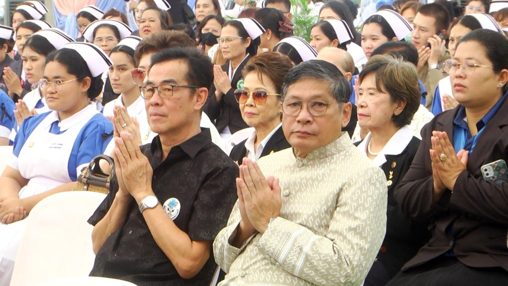 โดยมีนายจองชัย เที่ยงธรรม อดีต รมช.แรงงานและสวัสดิการสังคม ผศ.ดร.พิศิษฐ์ พลธนะ ผอ.วิทยาลัยพยาบาลบรมราชชนนี สุพรรณบุรี นายคมสัน ทองชม ผู้พิพากษาหัวหน้าศาล จ.สุพรรณบุรี พ.อ.ณัฐติพงษ์ ตะโกใหญ่ รอง ผอ.รมน.จ.สุพรรณบุรี พ.ต.อ.ยิ่งยศ เขินอำนวย รอง.ผบก.ภ.จว.สุพรรณบุรี พ.ต.อ.บุญย์พัชร์ ปิยะบุญสิทธิ ผกก.สภ.เมืองสุพรรณบุรี นายเอกภพ จันทร์เพ็ญ ผอ.ศูนย์ป้องกันและบรรเทาสาธารณภัย เขต 2 สุพรรณบุรี รองนายกเหล่ากาชาดจังสุพรรณบุรี นางสาวนิษฐกานต์ คุณวัชระกิจ วัฒนธรรม จ.สุพรรณบุรี ดร.เอกพันธุ์ อินทร์ใจเอื้อ นายกเทศมนตรีเมืองสุพรรณบุรี แพทย์ พยาบาล หัวหน้าส่วนราชการ และประชาชนร่วมงานจำนวนมาก