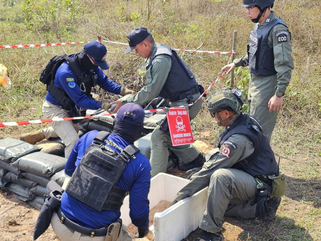 มีระเบิดที่ยังไม่ระเบิดและต้องทำลายจำนวน 7 ลูก จากทั้งหมดที่ทหารกัมพูชา ยิงเข้ามาในเขตพื้นที่พลเรือนของฝั่งไทย 169 ลูก และยังอยู่ระหว่างการสำรวจอีกอย่างต่อเนื่องในเขตพื้นที่สีแดงโดยเฉพาะในแหล่งน้ำสาธารณะ การทำลายระเบิดเป็นไปด้วยดี ซึ่งฝ่ายไทยได้ประสานแจ้งไปยังฝั่งกัมพูชา แล้วว่าจะมีการทำลายระเบิด