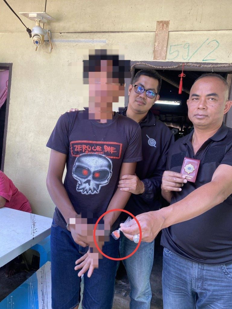 โดยเจ้าหน้าที่ตำรวจได้รับแจ้งจากสายลับว่ามีวัยรุ่นชายขับขี่รถจักรยานยนต์ยี่ห้อฮอนด้า รุ่นเวฟ สีแดงดำ ทะเบียนจังหวัดพังงา ไปซื้อยาบ้าบริเวณบ้านเขาเปาะ เจ้าหน้าที่จึงวางแผนติดตามและเข้าตรวจสอบ ต่อมาพบว่าผู้ต้องหา ขับขี่รถจักรยานยนต์คันดังกล่าวมาถึงบริเวณบ้านเกิดเหตุ เมื่อเจ้าหน้าที่แสดงตัวขอตรวจค้น ผู้ต้องหาได้วิ่งหลบหนีเข้าไปภายในบ้านและโยนสิ่งของบางอย่างลงพื้น แต่เจ้าหน้าที่สามารถติดตามควบคุมตัวไว้ได้ จากการตรวจสอบพบยาบ้าจำนวน 10 เม็ดตกอยู่ภายในบ้าน ผู้ต้องหายอมรับว่ายาบ้าเป็นของตนนอกจากนี้ จากการตรวจสอบโทรศัพท์มือถือพบว่ามีการเล่นพนันออนไลน์ (สล็อต) ผ่านเว็บไซต์ MEETANG365.COM โดยมีการเติมเงินเล่นครั้งละประมาณ 20 บาท
