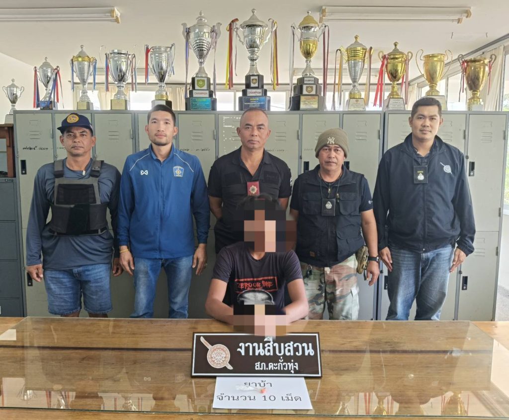 เมื่อวันที่ 22 มกราคม 2569 ภายใต้การอำนวยการและสั่งการของ พ.ต.อ.ประกอบ บุญขวัญ ผกก.สภ.ตะกั่วทุ่งพ.ต.ท.ภครพล ศรีสุข รอง ผกก.สส.ฯ และพ.ต.ท.ปรีชา เพชรจุ้ยสว.สส.ฯ นำโดย ร.ต.ท.สมยศ ศรีทนนุกูล รอง สว.สส.ฯพร้อมด้วย เจ้าหน้าที่ตำรวจชุดสืบสวน สภ.ตะกั่วทุ่งและนายเกรียงไกร ทองสม ผู้ใหญ่บ้าน ม.7 ต.กระโสม อ.ตะกั่วทุ่ง จ.พังงา ร่วมกันจับกุม นายศิรภัทร์ (สงวนนามสกุล) อายุ 19 ปี พร้อมของกลางยาบ้า จำนวน 10 เม็ดโทรศัพท์ จำนวน 1 เครื่อง ในพื้นที่บ้านเขาเปาะ ม.5 ต.กระโสม อ.ตะกั่วทุ่ง จ.พังงา