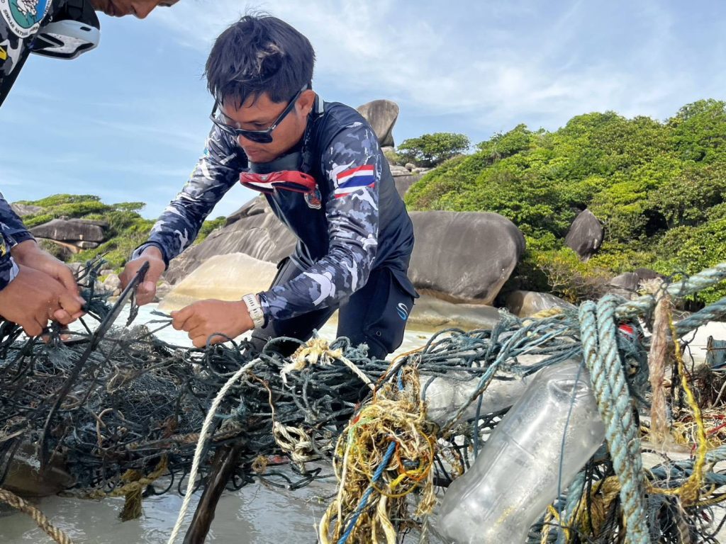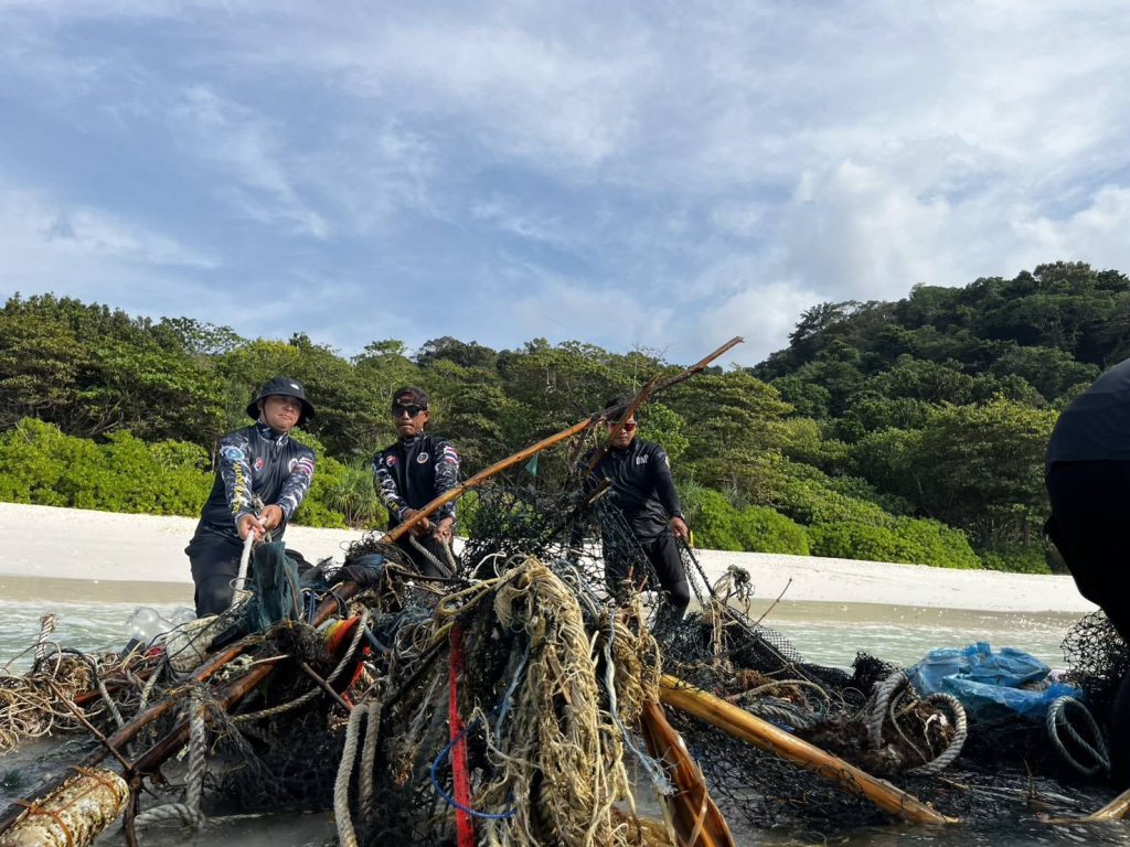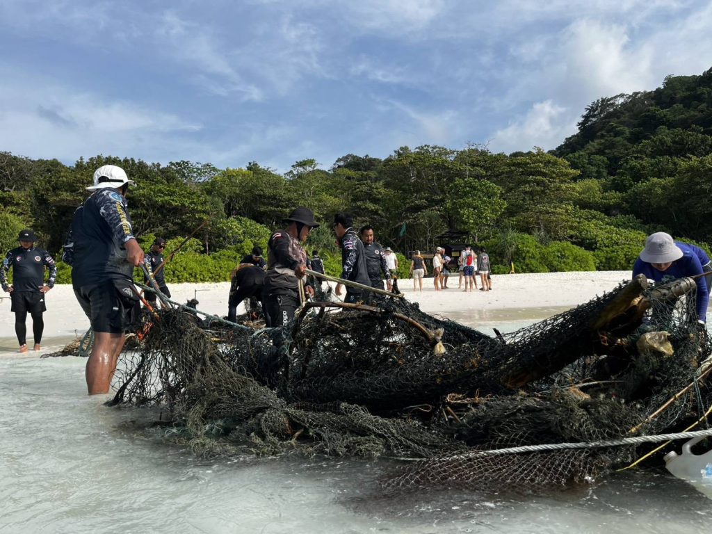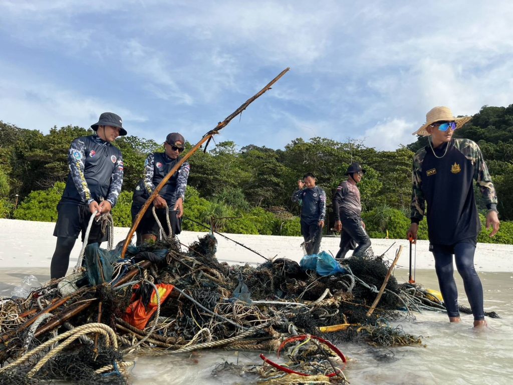 พังงา/อุทยานสิมิลันเก็บกู้ “อวนผี” กว่า 1 ตัน ช่วยชีวิตสัตว์ทะเลจากภัยเงียบใต้มหาสมุทร