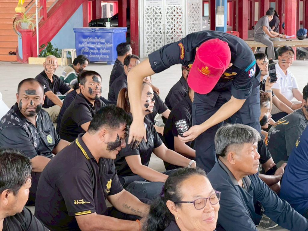 สีสันของการฝึกครั้งนี้คือการเดินลาดตระเวน ของชุด ชรบ. ที่มีทั้ง กำนัน ผู้ใหญ่บ้าน ผู้ช่วย สารวัตรกำนัน อาสาสมัครมูลนิธิเสมอกัน มีทั้งชายหญิง บางพื้นที่ มากันทั้งสามีภรรยา ซึ่งการจำลองการเดินลาดตระเวนเจ้าหน้าที่จะพรางใบหน้าใช้ผ้าเหลืองปิดตา จับมือกันเดิน โดยมีครูฝึกคอยบอกทาง ระหว่างทางจะเจอปัญหา ทั้งจากทางเดิน การถูกโจมตี ด้วยอาวุธ การหลบหลีกเมื่อเจอสิ่งผิดปกติ การหมอบคลาน มุดลอดสิ่งกีดขวาง งานนี้การแกล้งชุด ชรบ.ด้วย แกล้งอย่างไรไปดูภาพกัน