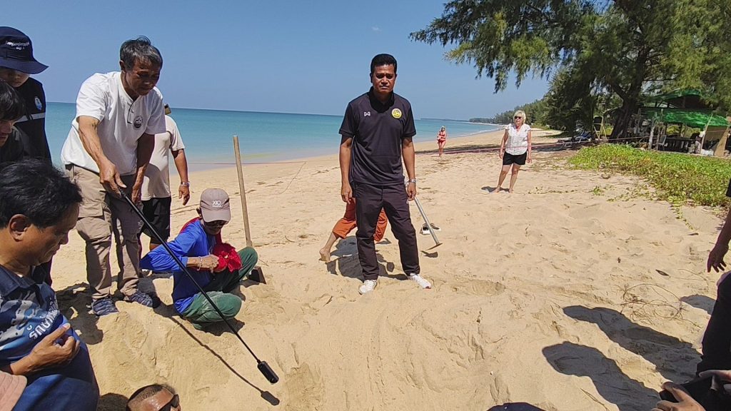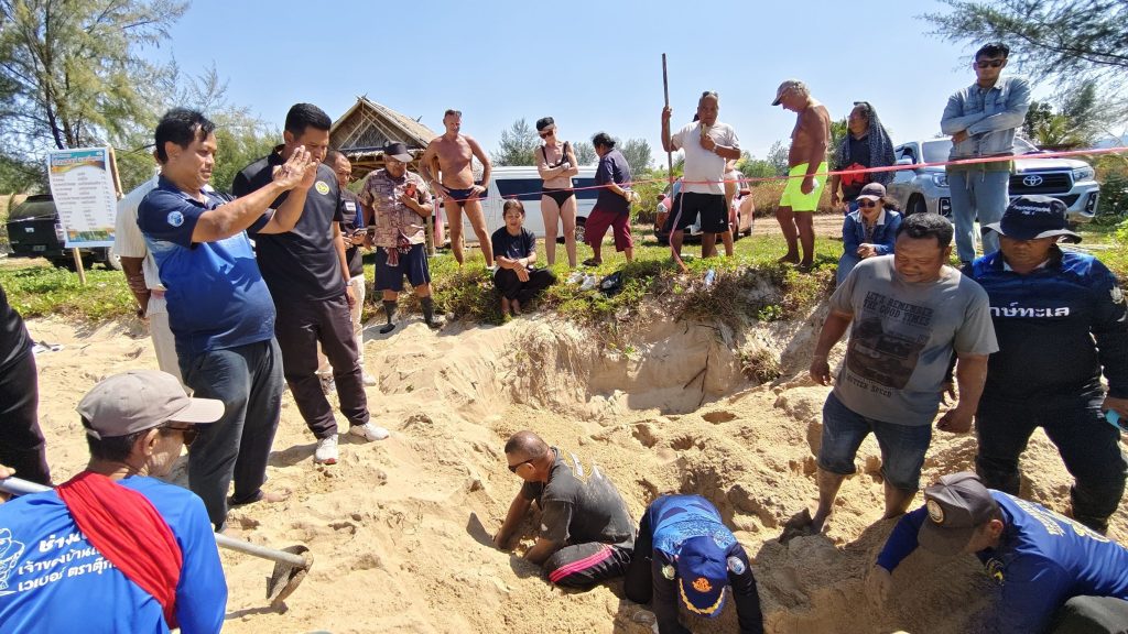 เมื่อวันที่ 24 ม.ค. 69 นายดำรง ฉิมทับ นายอำเภอตะกั่วป่า พร้อมด้วย นายกฤษชนะ นิสสะ ผู้อำนวยการสำนักงานทรัพยากรทางทะเลและชายฝั่งที่ 6 นายสุริยะ สอนเสริม ผู้อำนวยการศูนย์อนุรักษ์ทรัพยากรป่าชายเลนที่10 (ตะกั่วป่า พังงา) นายจักรพันธ์ ม่วงยิ้ม ผู้อำนวยการส่วนอนุรักษ์ทรัพยากรป่าชายเลน ลงพื้นที่ตรวจสอบตามที่ได้รับแจ้งจากชาวบ้านว่ามีเต่าทะเลขึ้นมาวางไข่บริเวณหาดบางหลุด หมู่ที่ 2 ต.บางม่วง อ.ตะกั่วป่า และได้ประสานการปฏิบัติงานร่วมกับสำนักงานทรัพยากรทางทะเลและชายฝั่งที่ 6 ร่วมกับศูนบ์วิจัยทรัพยากรทางทะเลและชายฝั่งทะเลอันดามันตอนบน ผู้นำชุมชน องค์กรปกครองส่วนท้องถิ่น และประชาชนพื้นที่ ผลการตรวจสอบพบเต่ามะเฟืองขึ้นวางไข่ จำนวน 1 รัง มีขนาดพาย 160 ซม. ขนาด 65 ซม.ทางเจ้าหน้าที่และชาวบ้านได้ช่วยกันขุดหาไข่เต่าที่ฝั่งใต้ทรายพบว่ามีไข่เต่าดี 84 ไข่ลม 6 ไข่แตกในรัง 1 ฟอง ตำแหน่งวางไข่อยู่ใกล้แนวที่น้ำทะเลท่วมถึง และจะส่งผลกระทบต่อการฟักไข่ จึงทำการย้ายไข่ไปฟักบริเวณใกล้เคียงที่มีความเหมาะสมและปลอดภัย จัดทำคอกป้องกันภัยคุกคามตามธรรมชาติ พร้อมประชาสัมพันธ์ให้ประชาชนในชุมชนได้ช่วยกันเฝ้าระวังดูแลหลุมฟักไข่จนกว่าไข่เต่าจะฟักและลูกเต่าลงสู่ทะเลได้อย่างปลอดภัย ซึ่งจะใช้ระยะเวลาประมาณ 55-60 วัน