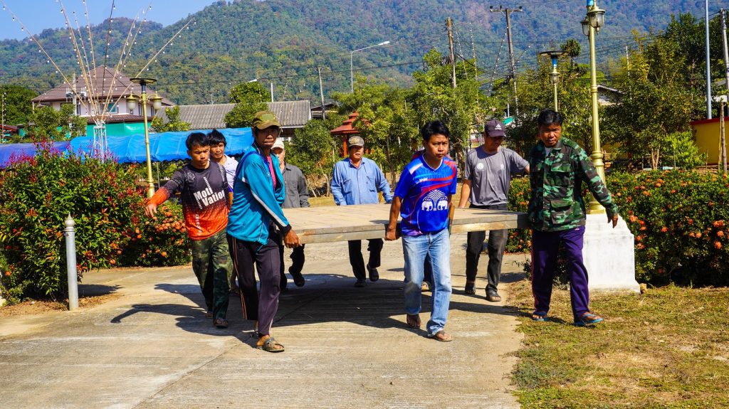 เวลา 08.00 น.คณะศรัทธาพร้อมกัน ที่วัดในสอยเพื่อจัดเตรียมงาน สร้างกองโหล เตรียมสถานที่